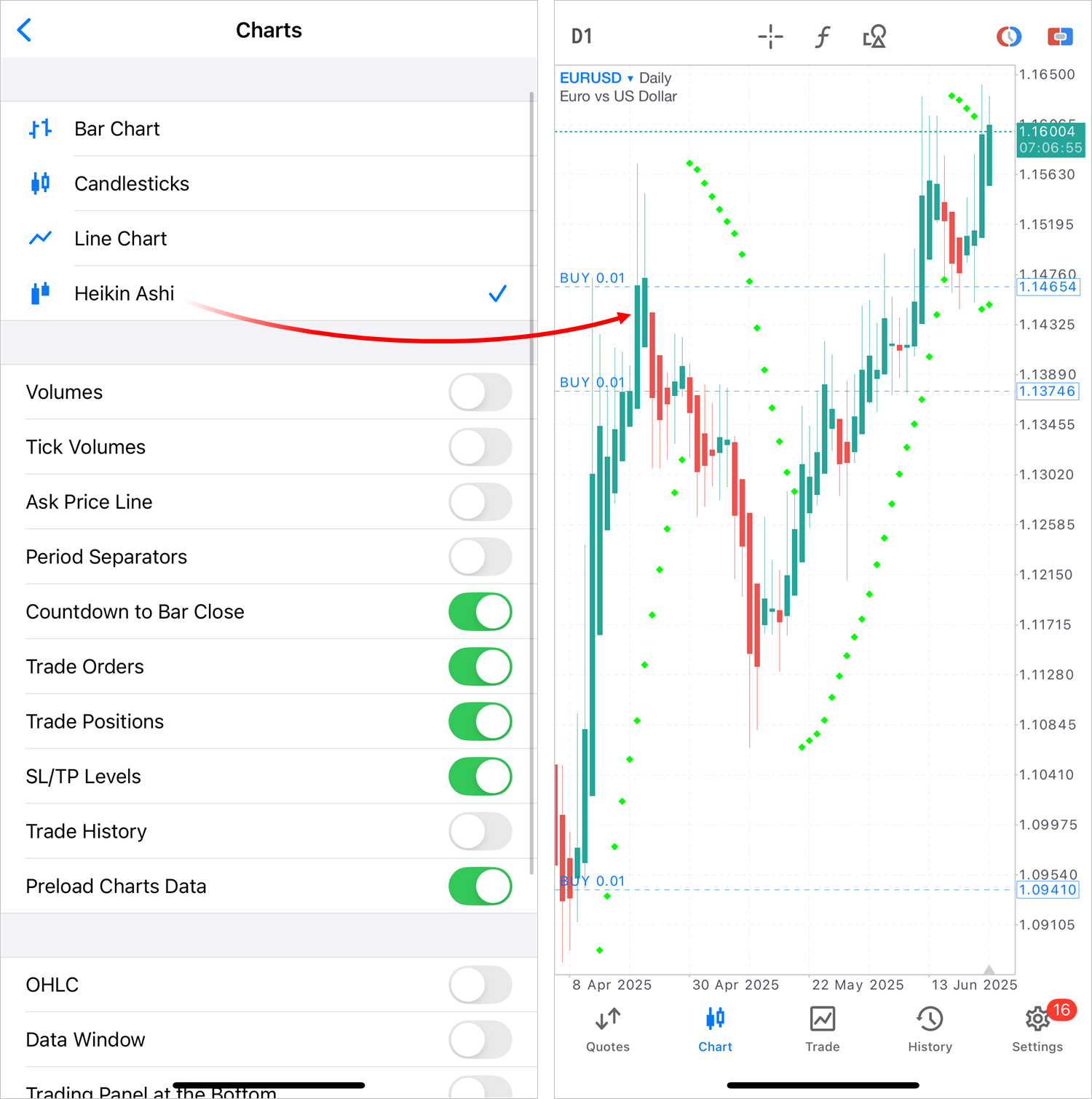 2. 添加了 ZigZag 和市场概况指标,以及新图表类型 — 平均 K 线图(Heikin-Ashi)。这些工具将增强市场分析和趋势识别。